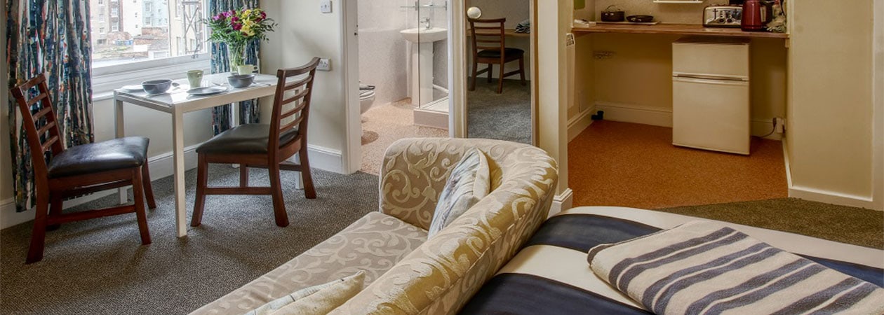 Seabreeze 10 is a cosy and contemporary mini suite room. These rooms are a studio style apartment with small kitchenette, dining and seating areas. Situated in our quiet and cliff top located Seabreeze building.